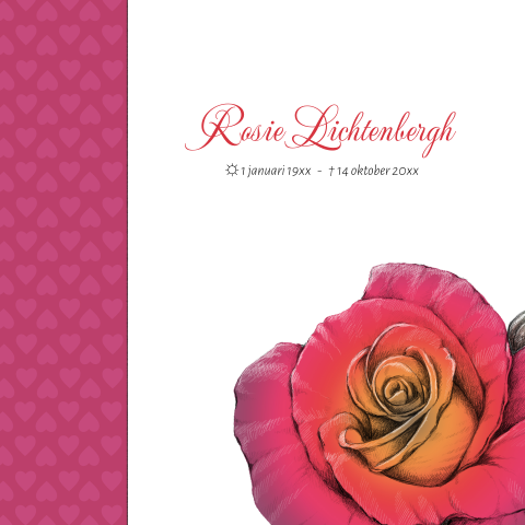 Prachtige kleurrijke rouwkaart met roos en hartjes