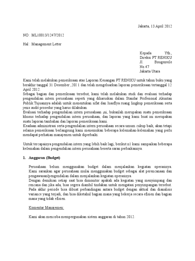 Kecurangan Yang Disampaikan Dalam Manajemen Letter Dengan Menggunakan